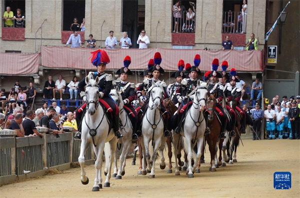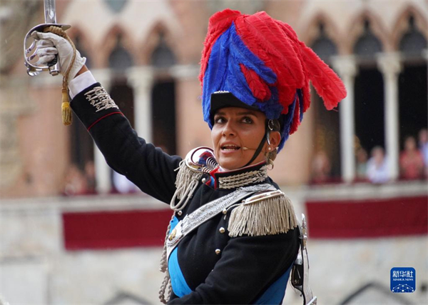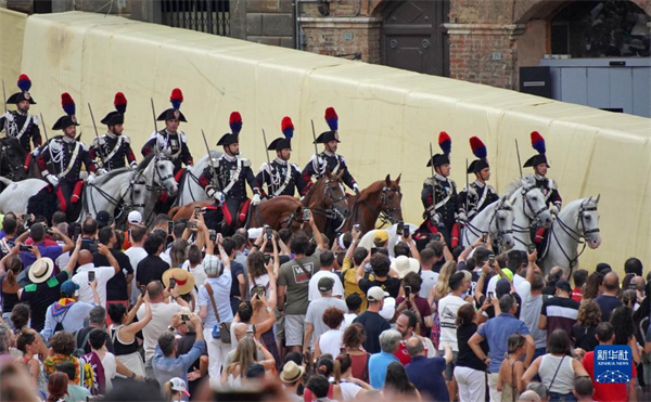 8月16日,意大利宪兵在锡耶纳赛马节上表演。