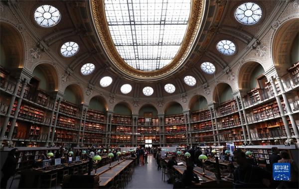 这是9月17日在法国巴黎拍摄的法国国家图书馆黎塞留馆的“椭圆大厅”。