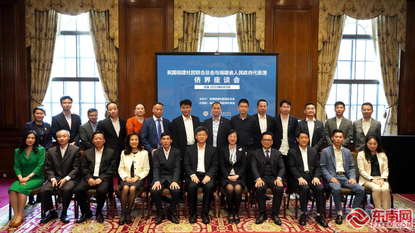 东南网英国6月10日讯(特约记者 林希鹰)当地时间6月8日,英国福建社团联合总会与到访英国的福建省人民政府代表团一行举行侨界座谈会。福建省政府党组成员康涛、中国驻英国大使馆公参兼总领事江雷、英国福建社团联合总会主席李光喜等出席并致辞。与会代表就中英之间特别是福建省与英国各地在经贸投资、科技教育、人文交流等领域展开交流。