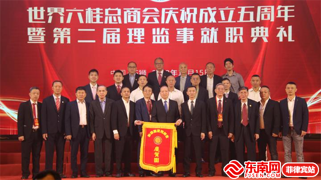 东南网菲律宾10月17日讯(特约记者 李琪琪)10月15日,世界六桂总商会庆祝成立五周年暨第二届理监事就职典礼在福建省石狮市隆重举行。洪及祥荣任新届会长。