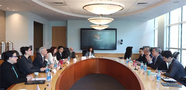 恩格勒表示,大学肩负科技创新、人才培养及国际交流的重要使命,美中不同大学、不同学科之间的密切合作是应对全球性复杂问题的重要途径。天普大学始终坚持国际化办学理念,以培养具有全球竞争力的人才为己任,在意大利、日本等国已建设分校。我校愿赓续对华友好合作传统,积极响应习近平主席提出的“未来5年邀请5万名美国青少年赴华交流”重大倡议,做美中学术交流的倡导者、践行者。