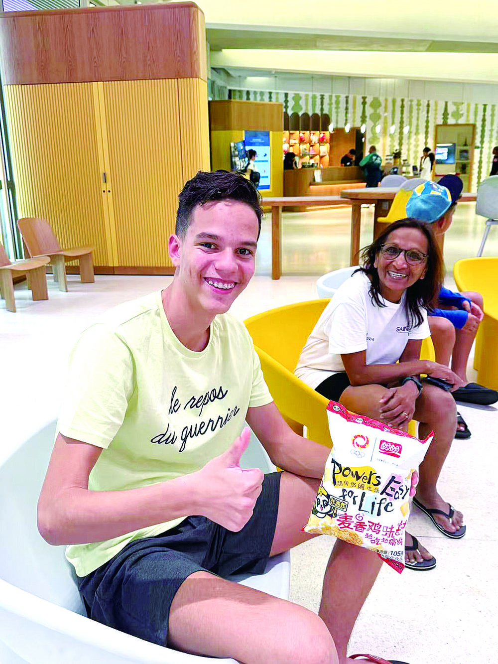 在“中国之家”,盼盼食品的适用场景有很多:休闲娱乐时,盼盼大红袍是大家品味中国茶的最佳选择;会友时,盼盼每日坚果、梅尼耶干蛋糕等,让大家可以忙里偷闲;训练累了,吃一块盼盼吐司面包补充体力,复活满身的体能……在巴黎,盼盼食品已经成为奥运健儿的零食包。