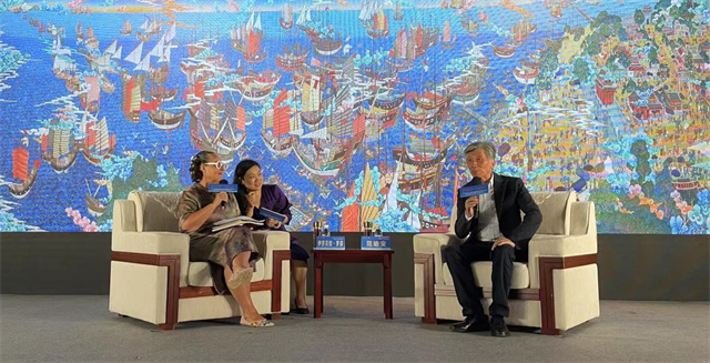 8月20日,中国美术家协会主席范迪安(右一)与伊莎贝拉就中法艺术交流等议题在惠安小岞美术馆进行交流对谈。邓文祥 摄