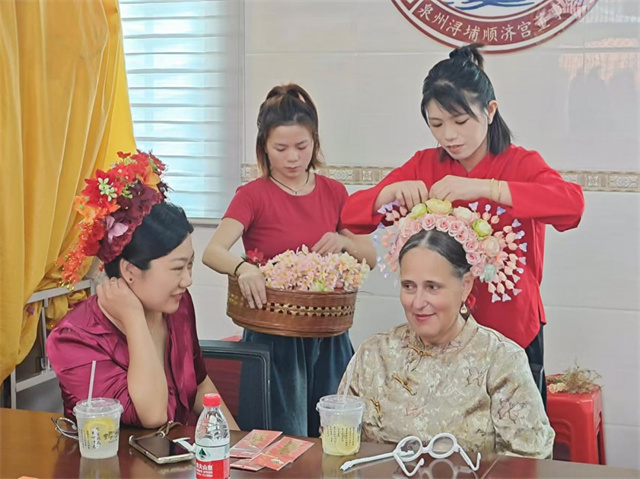 据了解,这是伊莎贝拉第一次到访泉州,除了体验簪花外,在泉州期间,她还观看了木偶戏、南音,品尝了地道的泉州美食,并学会了冲泡工夫茶。