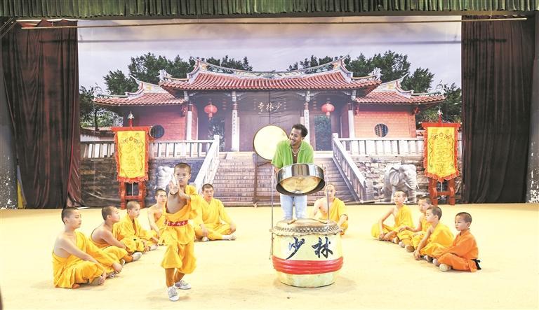 在泉州少林寺,学员们目不转睛地观看武僧团绝妙的群体表演,感受中国传统武术的独特魅力。特立尼达和多巴哥音乐人约书亚·雷格雷罗用来自家乡的钢鼓弹奏起中国传统名曲《茉莉花》。“这是特立尼达和多巴哥独有的乐器——钢鼓(Steel Pan),我之前带着它在北京的长城演奏,我想用它来展示两国的文化,纪念我们的友谊!”约书亚·雷格雷罗随着少林拳法即兴演奏,在悠扬的鼓韵和精彩的功夫表演中,来自大西洋彼岸的热带风情与中国传统武术文化相映成趣。
