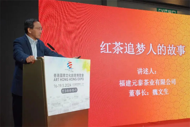 除了红茶地图,在魏文生的“元泰茶驿站”展位里,还展示了来自家乡福建的特色红茶产品——坦洋工夫红茶、永泰红茶、茉莉红茶……,并摆放了他与太太陈安妮共同编著的《话说福建红茶》《中国红茶经典》等书籍,魏文生说,它们都是他走过20年茶路的见证者。20多年来,魏文生努力奔跑在红茶产业之路上,不仅在国内成功推广了红茶文化,更将这份源自东方的韵味带向了世界。望着这些展品,魏文生感慨地说:“我是中国红茶的追梦人,‘为中国红茶呐喊’就是我的使命。”