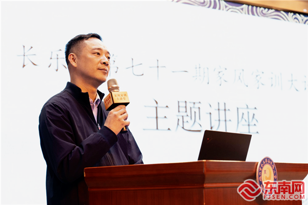 大讲堂在长乐区海峡路小学书记何毓洵的致辞中拉开序幕。他说,中华优秀传统文化和家风家训,也需要薪火相承,代代相传,方能生生不息。正所谓“天下之本在国,国之本在家”。千千万万个家庭是国家发展、民族进步、社会和谐的重要基点。良好的家风在我们的成长过程中起着关键的作用,是终身的财富,应当世代传承。
