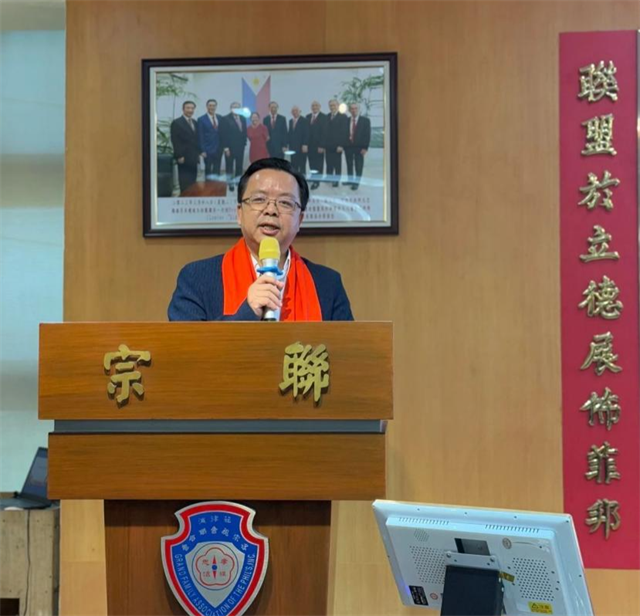 黄溪连积极评价宗联为团结服务宗亲、推动中菲交流合作所做贡献。他指出,宗亲文化是中华优秀传统文化的瑰宝,深刻诠释了中华民族“尊祖先、崇孝道、重亲情、讲伦理”的价值取向,承载着包括两岸同胞在内所有炎黄子孙对中华根脉的认同与归属。他勉励宗联继续传承中华优良传统,弘扬华社新风尚,推动中菲民间友好,同时带领各社团旗帜鲜明坚持一个中国原则,在菲反对任何形式的“台独”分裂活动。