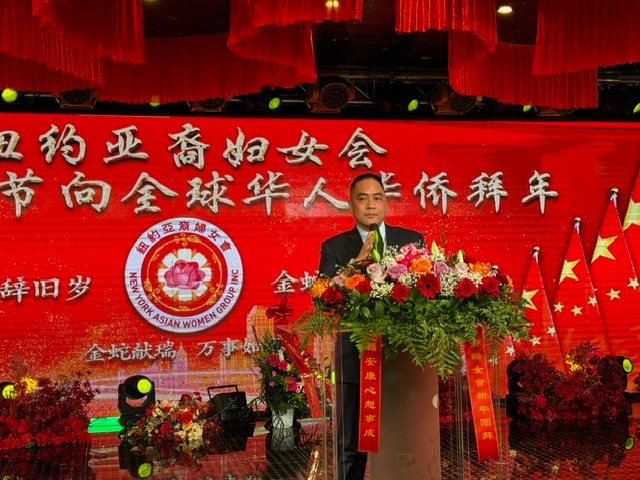 邢玉临代表中国驻纽约总领事陈立向妇女会全体会员致以新春祝福。她表示,贵会自成立以来,团结旅美乡亲,弘扬中华文化,坚持创会宗旨,为家乡建设与中美民间友好起着积极的作用。
