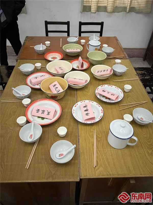 之后,小组成员们进入毓英楼,观看了闽江学院的宣传片,并参观了闽江学院图书馆旧址。图书馆旧址基本保留了九十年代学校图书馆的样貌。图书馆中摆放着的一张餐桌吸引了同学们的注意:那是习近平总书记亲任校长期间,某年除夕夜,与学校教师一起在图书馆吃年夜饭的餐桌。那时,学校每名教师各自负责一盘菜,最终凑成了这桌简朴但温馨的年夜饭。三十年后的今天,当年的欢声笑语仍在耳畔。