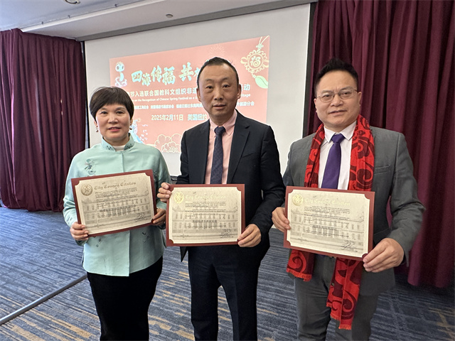 罗曼在现场为主办单位颁发奖状,纽约市议员马泰也寄来奖状,表彰他们为社区做出的积极贡献。他们表示,春节是全球性的文化盛事,通过庆祝春节,美国人民有机会亲身体验中国的节日氛围,感受华侨华人对家庭、亲情和友情的珍视,这种跨文化的交流不仅有助于增进两国人民间的理解和友谊,还能促进双方在文化、经济、教育等领域的合作与发展。