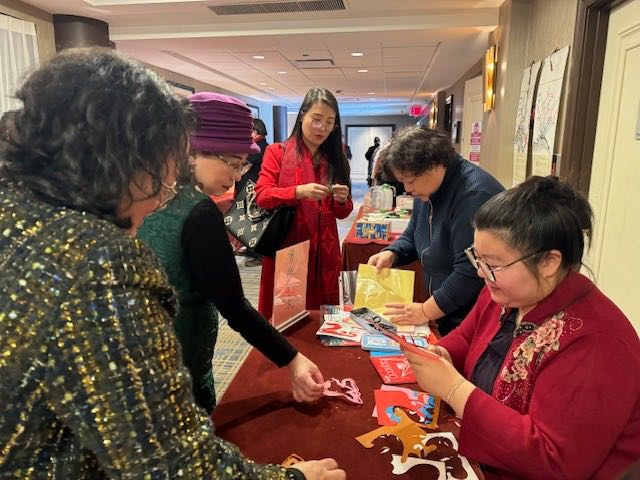 福建日报社东南网美国站还特意从中国带来蛇年公仔吉祥物、福茶和“福”字宣传海报分享给大家,现场还设有非遗剪纸和福茶品鉴活动。
