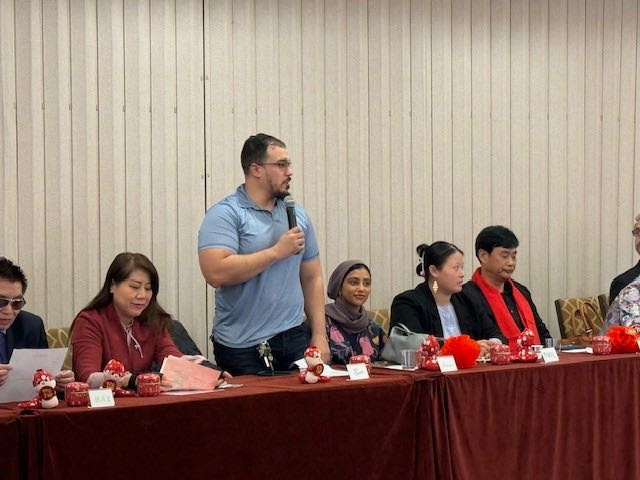 古陆基、李依凌、林泳莉,纽约中美商会主席江锦鑫,外国友人代表阿玛拉(Ammara )、扎蒙(Zaman)、罗西(Rossy)、麦克得(Michael Daly )、查理士苏(Charles W Sullivan)等也先后发言,表示日常中参与过不少类似的节日活动,不仅能品尝到各种传统美食,还能亲身参与到各类有趣的庆祝仪式中,每一次活动都让他们深刻感受到中国文化的独特魅力和深厚底蕴,这不仅让他们对中国文化有了更深入的了解,更感受到了中国人民的热情好客和团结友爱。