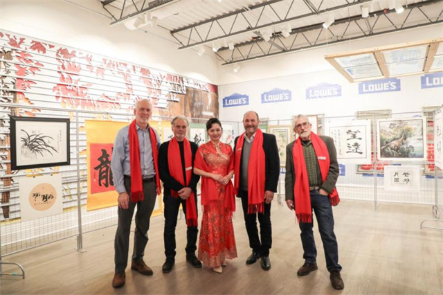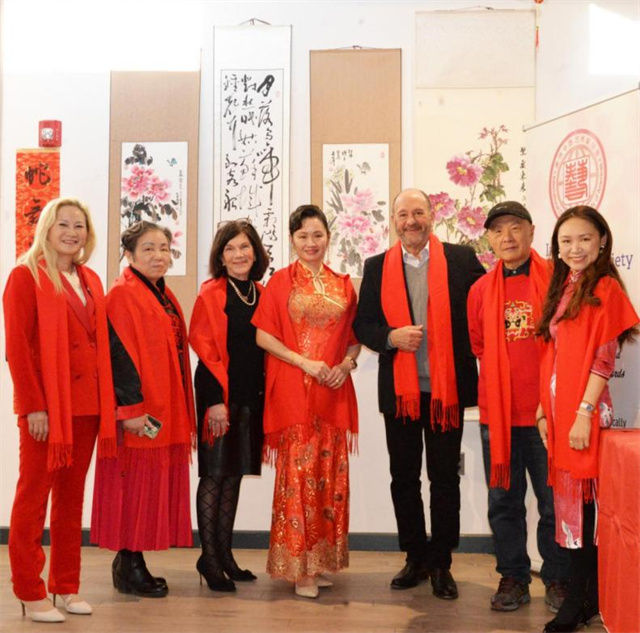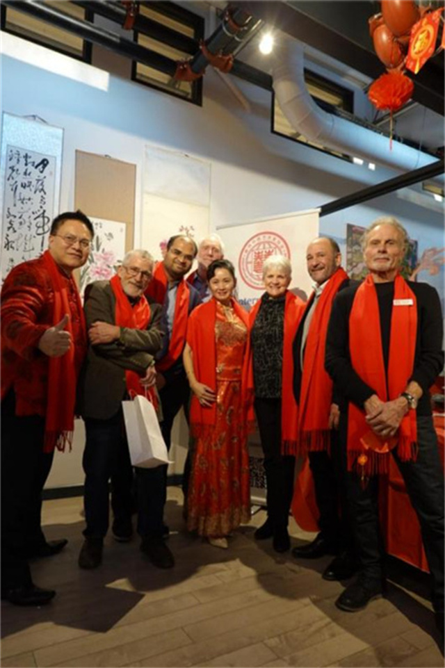 书法家肖文、严众开还特别给现场来宾书写吉语、春联,表达新春祝福;画家吴雪芹代表协会为切斯特郡艺术家协会赠送国画作品。