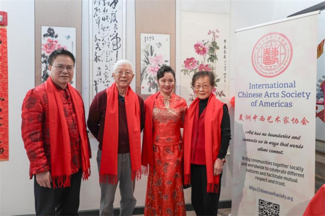 东南网2月17日讯(特约记者 白水)近日,由美洲中西艺术家协会(International Chinese Arts Society of Americas)、美国切斯特郡艺术协会 (Chester County Art Association)联合主办的庆祝2025乙巳蛇年新春活动在切斯特郡举行。宾夕法尼亚州参议员卡罗琳·科米塔,宾夕法尼亚州州长亚太裔事务咨询委员会执行主任拉津·M·卡鲁,切斯特郡艺术协会董事会主席兼美洲中西艺术家协会荣誉主席约翰·贝克,拉塞尔大学艺术博物馆馆长兼首席策展人卡罗琳·格林博士,亚裔美国妇女联盟主席胡惠霞,Glenn Hing和夫人等嘉宾及协会成员、友人等近百人参加。现场展示了书画作品,并通过义卖为慈善组织“雀之家”募捐。