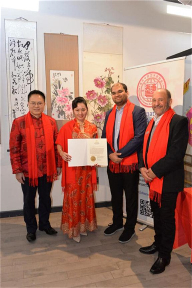 活动中,拉津·M·卡鲁代表宾夕法尼亚州州长向美洲中西艺术家协会赠送了新年贺函。