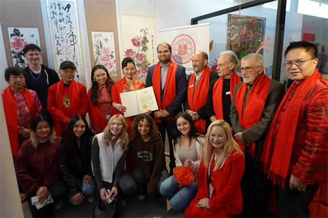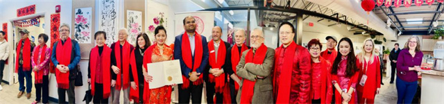 美洲中西艺术家协会主席许蜀(Sue Cheng)表示,感谢大家的支持和合作,让活动如期举行。去年年底,“春节—中国人庆祝传统新年的社会实践”被正式列入联合国教科文组织人类非物质文化遗产代表作名录,这是中国的骄傲,也是全球华侨华人的骄傲,写春联、赠“福”字,送吉祥是欢庆新春佳节的传统内容,愿中美两国友好合作关系源远流长,愿世界在和平、稳定、和谐中发展。