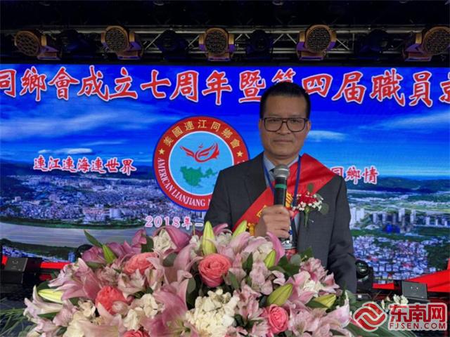 东南网4月22日讯(特约记者 纽约墨人)当地时间4月20日,美国连江同乡会(以下简称“同乡会”)成立七周年暨第四届职员就职典礼在纽约举行。中国驻纽约总领馆领侨处潘焱主任、荣顶领事,同乡会主席张云,纽约州参议员刘醇逸、众议员郑永佳,连江乡亲等800余名中外各界嘉宾出席活动。晚会由项静文、启铭主持。