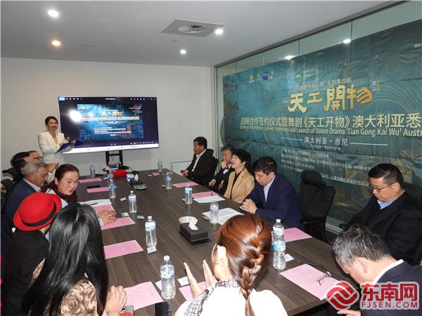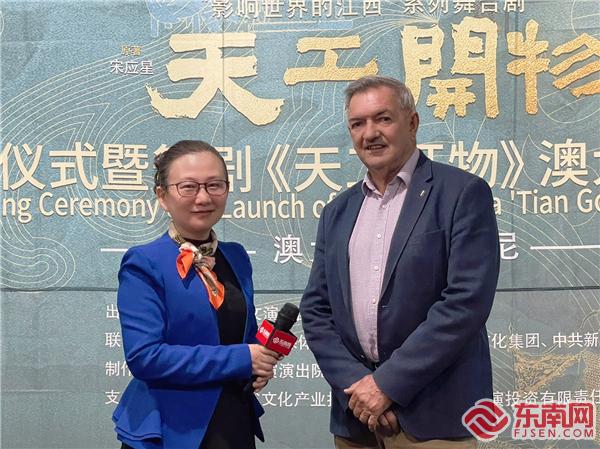 东南网6月6日讯(特约记者 一禾 兰木)当地时间6月5日,江西文演集团策划推出的“影响世界的江西”系列舞台剧首部作品《天工开物》(以下简称“作品”)签约仪式(以下简称“签约仪式”)在澳大利亚举行,主办方宣布作品将在10月25日赴悉尼歌剧院演出。中国驻悉尼总领事王愚,江西省访澳代表团团长、江西省委宣传部部长卢小青,江西文演集团党委副书记、副董事长、总经理李瑞峰,澳大利亚新南威尔士州前基础设施部部长托尼·凯利(Tony Kelly),澳大利亚江西总商会代表温亚芳,澳中文化旅游交流会会长李静等中澳嘉宾出席签约仪式。