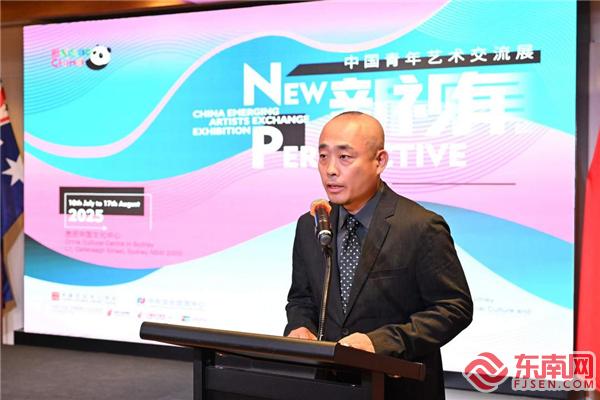 东南网7月11日讯(特约记者 一禾)当地时间7月10日,由悉尼中国文化中心与中外文化和旅游交流中心联合举办的“新视角——中国青年艺术交流展”(以下简称“艺术交流展”)在悉尼中国文化中心开幕。中国驻悉尼总领馆文化参赞王书羽,新南威尔士大学教授伊恩·霍华德(Prof Ian Howard),辽宁省鲁迅美术学院绘画艺术学院水彩画系副主任李宝荀、实验艺术系副主任李秋实,澳大利亚水彩画协会主席大卫·范·纽恩(Mr David van Nunen OAM),悉尼中国文化中心主任刘东,新南威尔士州美术馆中国艺术部主任曹音,艺术交流展策展人、北京青艺英才文化交流有限公司总经理姬忠鹏以及澳大利亚文化艺术界、新闻媒体朋友约80人出席开幕式。