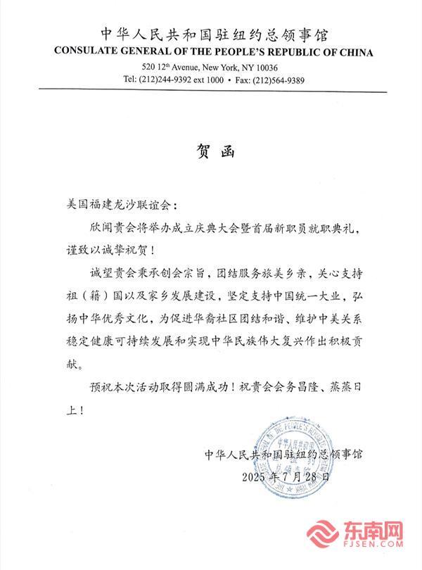 东南网7月29日讯(特约记者 纽约墨人)当地时间7月28日,美国福建龙沙联谊会(以下简称“龙沙联谊会”)首届成立暨新职员就职典礼(以下简称“典礼活动”)在纽约举行。