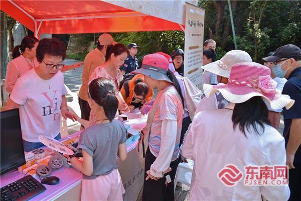活动当天,福建省图书馆在乌山西南门广场设立图书馆服务推广集市,将图书馆服务与文化体验有机融合——一站式涵盖办证咨询、参考咨询服务、数字资源推介、缩微文献阅览,以及金石传拓技艺体验五大功能区。现场人头攒动,既有白发老者驻足缩微文献展台细品古籍微缩影像;也有亲子家庭围在传拓体验区,在福建省非遗传承人的指导下,将翻刻自蔡襄书法作品的“忘归”“万安”石刻拓印成纸,把“乐而忘归,诸事万安”的祝福收入囊中;更有年轻读者通过数字资源终端,“云赏”福建古籍文献。这场设在山水间的服务集市,让图书馆的服务边界从“馆内”延伸至“户外”,让书香融入市民的日常生活之中。