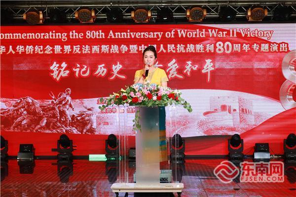 东南网8月11日讯(特约记者 白水)当地时间8月10日,为纪念中国人民抗日战争暨世界反法西斯战争胜利80周年,由美国福建同乡会主办,大纽约地区数十个华侨华人团体协办的“铭记历史·珍爱和平”专题演出活动(以下简称“专题演出活动”)在纽约法拉盛隆重举行。中国驻纽约总领馆副总领事孙丽萍、侨务副主任李德、领事向裕韬出席专题演出活动,纽约州参议员刘醇逸代表苏女士到场颁发奖状,美国飞虎队队员赵国鑫后代、美国云南文化促进会会长李静雨受邀致辞,并有近500名社会各界人士到场观看演出。专题演出活动由王早早主持。
