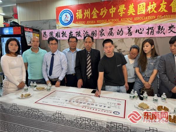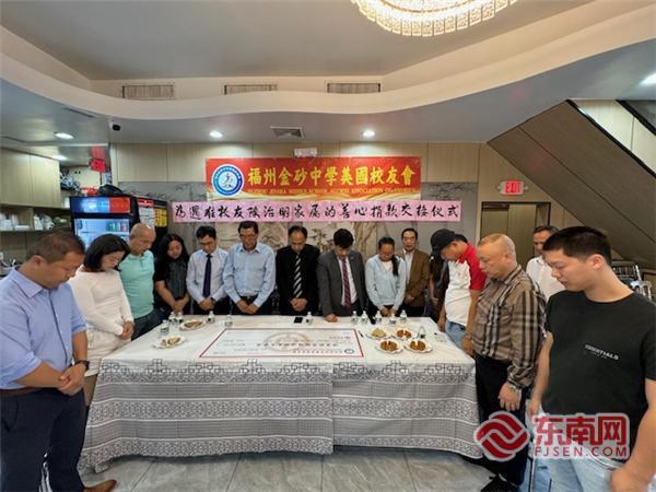 东南网9月23日讯(特约记者 纽约墨人)当地时间9月21日,福州金砂中学美国校友会(以下简称“校友会”)在布碌仑举行为遇难校友陈治明家属善心捐款8万多美元的交接仪式(以下简称“交接仪式”)。