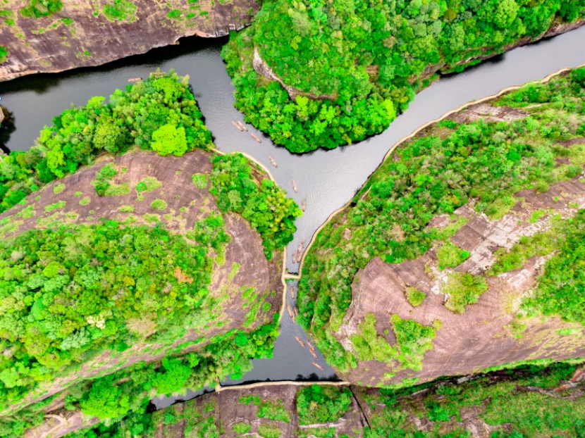 Jiulongtan is located in Taining County, Fujian, within the core area of the Taining World Natural Heritage site and Global Geopark. It earns its name from the nine mountain streams that meander like dragons before flowing into its waters.