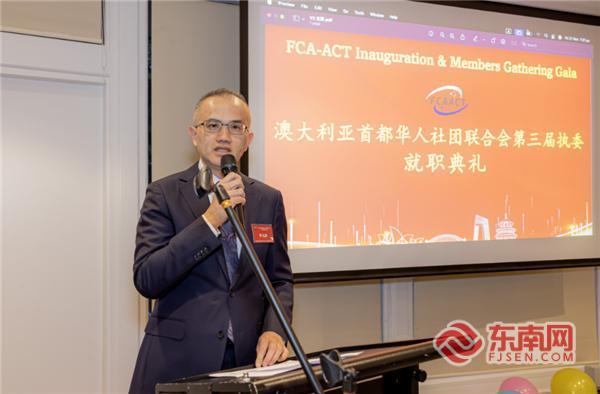 东南网11月24日讯(特约记者 一禾 吴雷蒙)当地时间11月21日,澳大利亚首都华人社团联合会(FCA-ACT)第三届执委会就职典礼暨会员社团联谊晚会(以下简称“典礼晚会”)在澳大利亚首都堪培拉举行。来自福建宁德古田的闽籍侨领吴鹏辉履任新一届会长,来自澳洲政界、商界、侨界及多元族裔社团的数百名嘉宾参加典礼晚会。