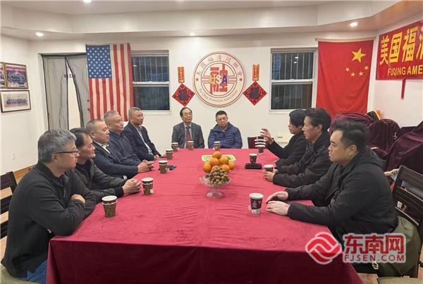 东南网11月25日讯(特约记者 白水)当地时间11月20日,中国国家级非物质文化遗产咏春拳国家级代表性传承人郑祖杰一行访美代表团(以下简称“代表团”)在美国亚裔社团联合总会秘书长朱立业陪同下拜访美国福清同乡会,受到美国福清同乡会热烈欢迎。美国福清同乡会主席林华斌与郑祖杰一行座谈交流,共叙乡情。