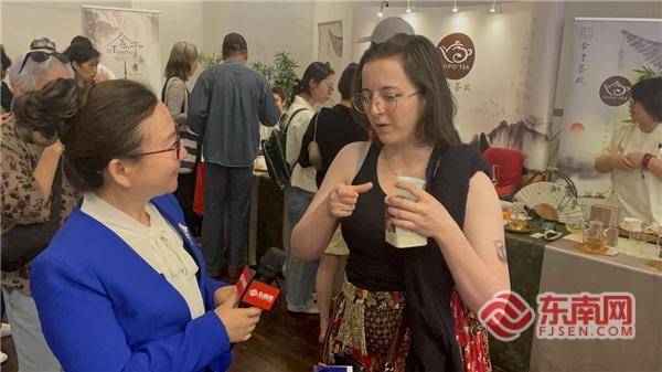 茶博会不仅是产品展示的平台,也是文化交流的桥梁。展会期间,闽籍侨二代、青年歌手吴天仪献唱了原创歌曲《福茶姑娘》,其旋律悠扬、歌词真挚,生动勾勒出福建四大名茶的文化图景,成为展会中一道动人的艺术风景。歌曲不仅传递了乡情与文化认同,也为福建茶文化的国际传播增添了艺术感染力。此外,现场还设有人气旺盛的中式服饰体验区、文化体验区、圣诞茶礼推荐区,并开展书法展示、茶艺表演等互动的文化项目活动,许多观众被这种茶文化与传统节庆相结合的活动形式所吸引。