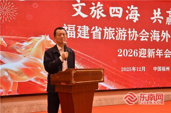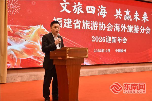 东南网12月17日讯(记者 王亮)为更好搭建海内外文旅商旅交流平台,凝聚海外旅游分会力量,增强行业凝聚力和扩大影响力,12月16日,福建省旅游协会海外旅游分会举办2026迎新年会。福建省侨联主席陈式海、副主席齐志,福建省旅游协会会长李毅强,以及省旅游协会下属各业态分会、部分地市旅游协会,来自30多个国家和地区的海外旅游分会会员及代表等近百人参加活动。