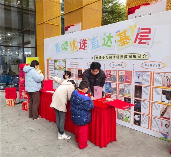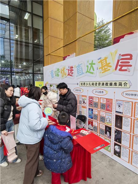 紧扣“读书享福”核心,“童读优选”优质少儿阅读资源库推广区更是“立体阅读”与直达基层覆盖的重要内容。春节数字阅读礼包,精选5000种、15000册优质文学、科普等图书,满足各年龄段青少年的基本阅读需求。工作人员通过互动演示,AI语音听书“耳边图书馆”功能,向读者介绍资源库中免费开放的海量数字书籍、有声绘本、阅读课程等资源,读者只需扫描二维码即可一键登录使用,随时随地畅享优质阅读内容,让“云端读书享福”成为日常。