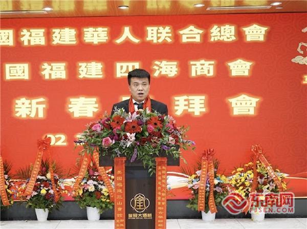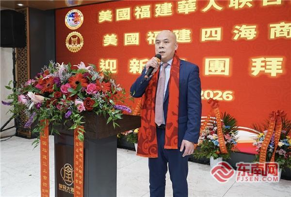东南网2月15日讯(特约记者 白水)当地时间2月13日,临近春节,美国福建华人联合总会与美国福建四海商会在纽约布碌仑共同举办迎新春团拜会(以下简称“新春团拜会”)。中国驻纽约总领馆领事向裕韬、周凯良,纽约州参议员陈学理,纽约州众议员郑永佳,纽约市议员马泰代表邹孟芹、市议员庄文怡代表雪莉、市议员黄友兴代表周国东以及闽籍侨、商界人士逾300人参加新春团拜会,共贺新春佳节,气氛热烈。