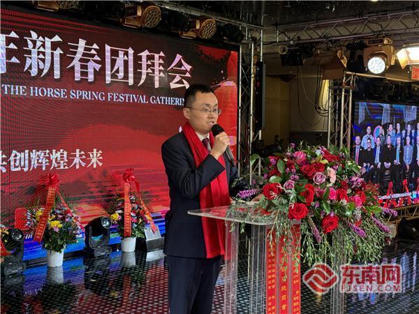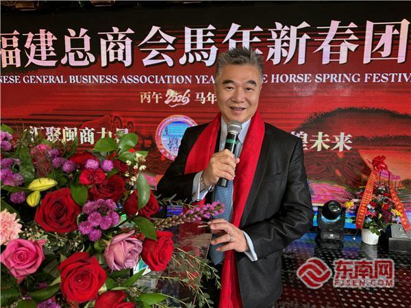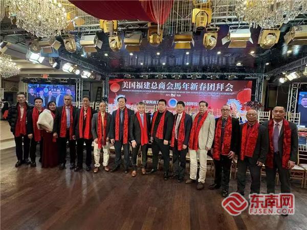 东南网2月20日讯(特约记者 纽约墨人)当地时间2月18日,美国福建总商会马年新春团拜会(以下简称“团拜会”)在纽约举行。中国驻纽约总领馆领侨处副主任李德、领事向裕韬,纽约州众议员郑永佳,纽约州参议员刘醇逸代表卢美华,美国福建总商会会长林河、监事长倪举凌、创会会长暨名誉会长林慈飞,以及资深顾问团成员合丰集团创始人暨东方超市集团董事长倪周敏、72钢铁集团董事长林华斌、鼎盛集团董事长王贵阳、大金冷暖集团林伟强、美国福建同乡会主席陈恒、美国福建三山会馆主席郑振何、美国福建华人联合会主席李华等出席团拜会,并和来自全美各地的众多会员企业家及代表,侨界、政界代表齐聚一堂,共迎新春佳节。