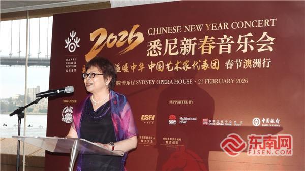 东南网2月26日讯(特约记者 一禾 吴雷蒙)当地时间2月21日,“2026欢乐春节·新春音乐会”(以下简称“音乐会”)在悉尼歌剧院成功举行。音乐会得到了新南威尔士州政府多元文化部和悉尼中国文化中心支持,由澳洲中华经贸文化交流促进会(以下简称“华贸会”)主办,澳中文化艺术促进会协办,澳丰文化集团以及中体未来承办。