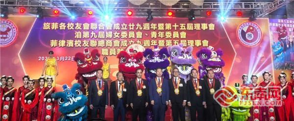 东南网3月23日讯(特约记者 洪宾宾)当地时间3月20日,菲律宾旅菲各校友会联合会(以下简称“校友联”)隆重举行庆祝成立二十九周年暨第十五届理事会,第九届妇女委员会、青年委员会,及菲律宾校友联总商会成立九周年暨第五届理事会职员就职典礼(以下简称“庆典大会”)。王清涵、王志钦、杨安雄、王世伟、洪珊谊担任庆典大会主席,施永嘉、柯顺庆、蔡志伟、蔡志洋、吴永坚荣膺新届主席、会长。