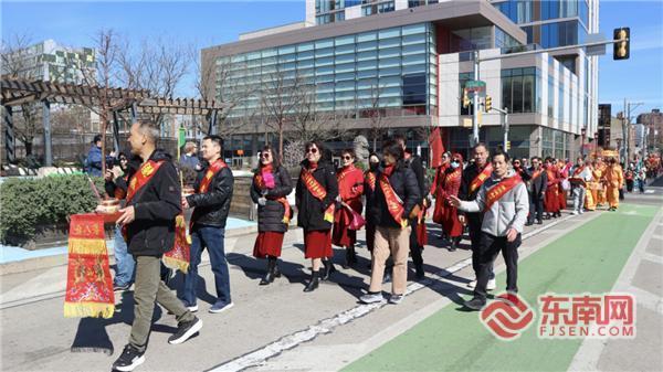 东南网3月31日讯(特约记者 贵茂)当地时间3月29日,美国猴屿民俗文化中心在费城举行民俗文化节暨“护闽将军千秋寿诞”庆典。中国驻纽约总领馆领事周凯良、向裕韬,纽约州州议员郑永佳,宾夕法尼亚州州长亚太裔事务主任拉辛卡鲁,亚太裔委员会专员陈威,宾夕法尼亚州政府卫生平权办公室顾问孙一,以及来自纽约、华盛顿、费城等地的猴屿乡亲与侨商学界代表等1500余人参加活动。