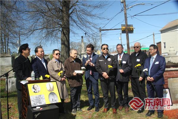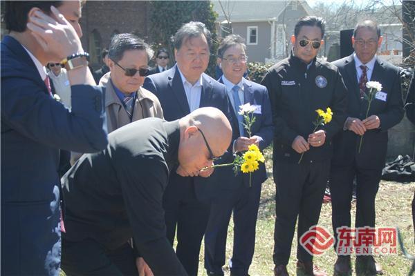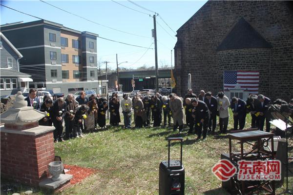 东南网4月14日讯(特约记者 刘伟)当地时间4月11日,美国新泽西华人联合总会组织新州华人到新泽西州贝勒维尔市(Belleville)荷兰归正教会墓地华工墓碑前,举行一年一度的纪念美东首批华工祭奠仪式。