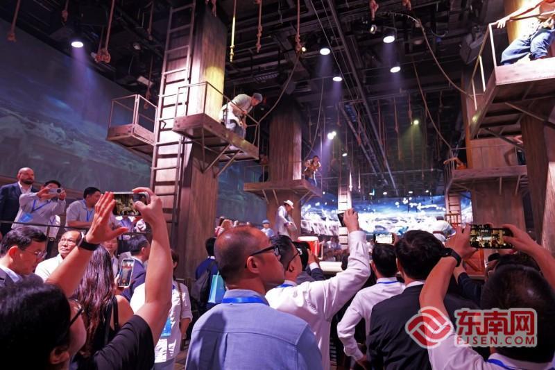 本次文旅经济大会以闽南文化元素为突出亮点,集中推出一批文旅项目,其中沉浸式演出《再回闽南》便是典型代表。该演出以侨批文化为情感纽带,通过六大实景空间与前沿科技融合,为与会嘉宾呈现一场跨越时空的文化盛宴。演出依托古城侨芗剧场的独特空间设计,构建起“侨批记忆博物馆”“月港离别歌” “闽南乡音街巷”等六幕沉浸式场景。许多旅行商看完这些震撼心灵的演出后,不禁为先辈们当年漂洋出海艰辛不易所感动,也体悟“重乡崇祖、爱拼敢赢”的闽南精神内核。