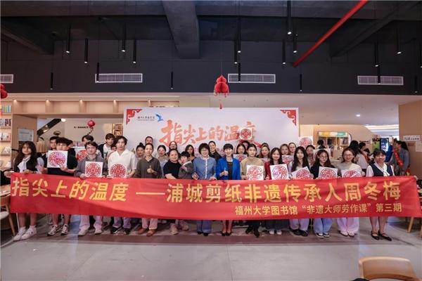 这场非遗劳作课,正是福州大学“科学阅读·点亮未来”活动周的生动缩影。周冬梅自幼受民间剪纸艺术熏陶,首创眼科手术剪精细剪纸技法,令方寸红纸间的图案更显细腻灵动,赋予浦城剪纸兼具北方粗犷大气与南方纤巧细腻的独特韵味。她累计培养学员两万余名、民间艺人数千名,推动浦城剪纸走出福建、迈向世界,成为中外文化交流的靓丽名片。本次活动将阅读从传统的书本研读,延伸至亲身实践与审美体验,让中外学子在动手创造中深化对中华传统文化的认同与热爱。福州大学图书馆馆长林林表示,借助可视、可触、可感的非遗技艺,阅读活动不再局限于静态的文字阅读,转而成为动态的文化体验,实现了文化传承、文化育人与阅读推广的有机统一。通过开展“非遗进校园”活动,福州大学图书馆希望构建起“技艺+典籍+精神”三位一体的文化育人新路径,实现“文化体验-经典阅读-价值塑造”的育人闭环,为非遗文化在校园传承、海外传播、文化育人等领域探索出新的育人路径和成效。