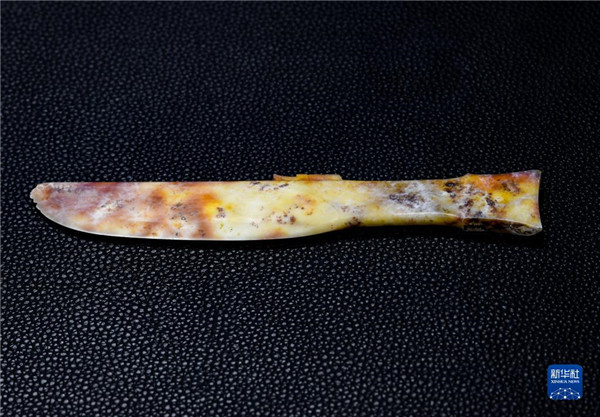 这是在四川省文物考古研究院三星堆考古研究所拍摄的三星堆遗址6号“祭祀坑”出土的玉刀(9月3日摄)。 新华社记者 王曦 摄