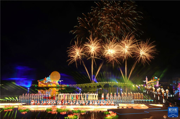 9月16日拍摄的开灯仪式上的烟火秀《灯火里的中国》。