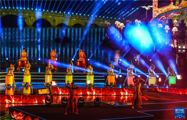 9月16日,演员在开灯仪式上表演《奋楫逐浪》。