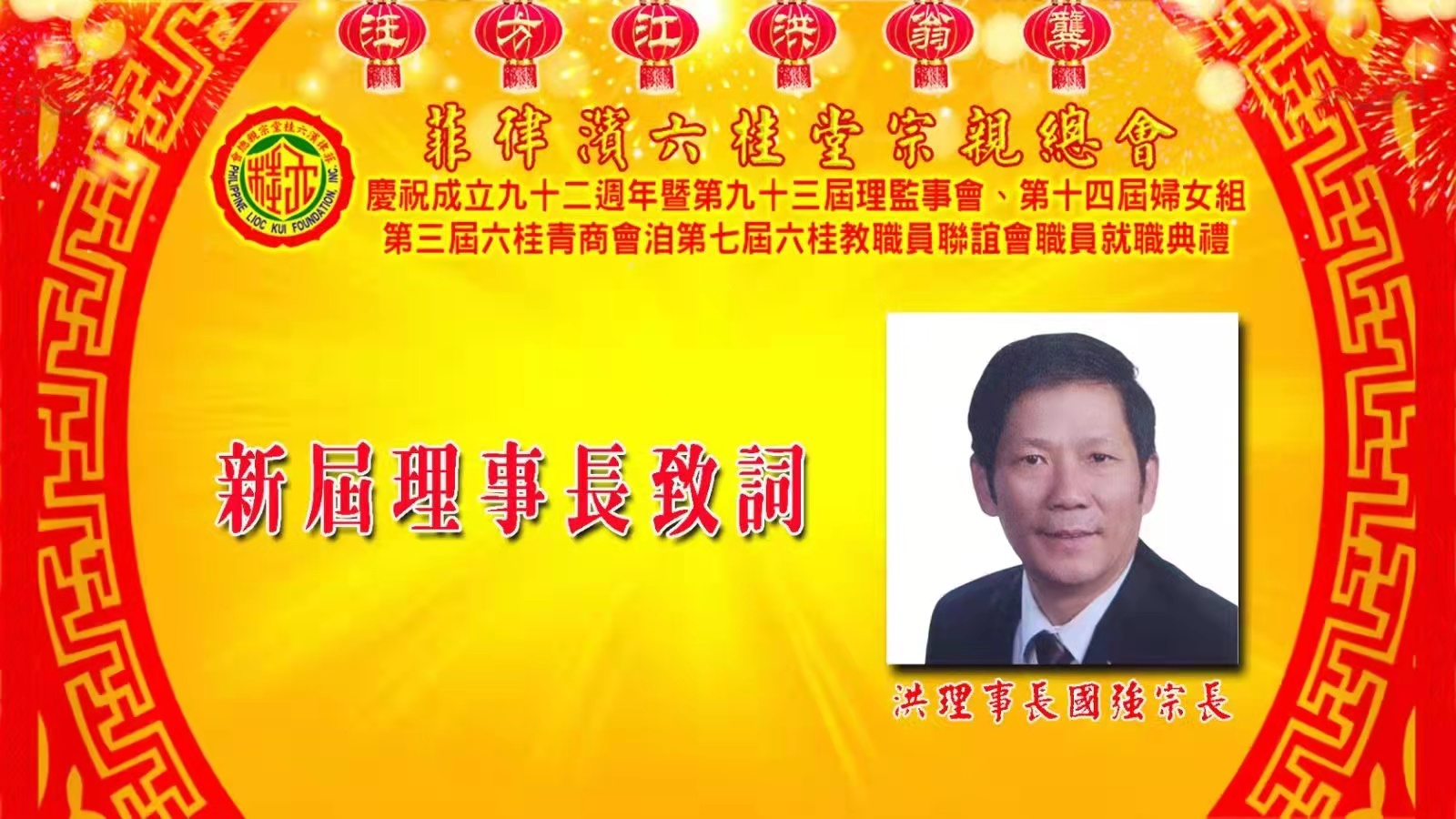 东南网菲律宾2月21日讯(本网特约记者 王丹凤)近日,菲律宾六桂堂宗亲总会(下简称“六桂堂宗亲总会”)以线上的方式举行新届职员就职典礼,洪国强任新届理事长。