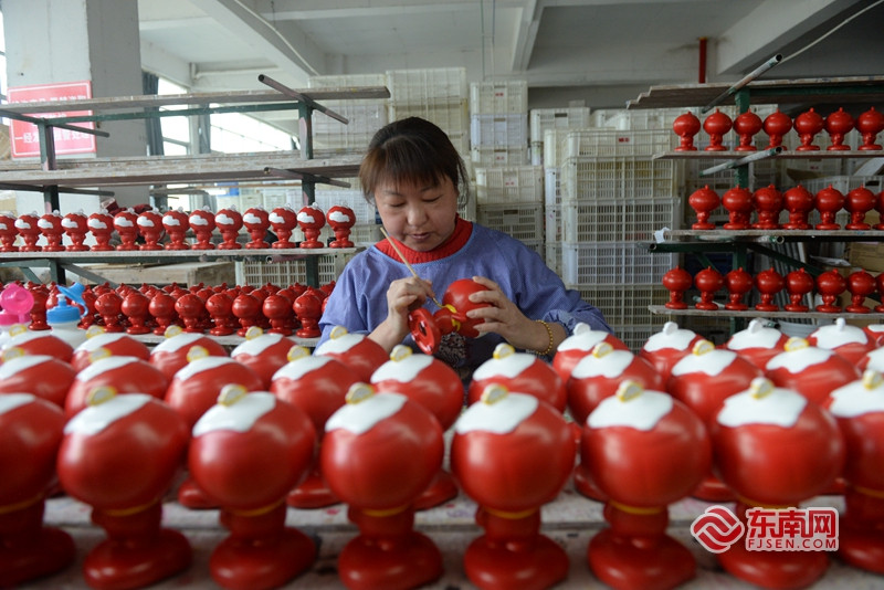 工人在给“雪容融”彩绘上色 李宏图 摄