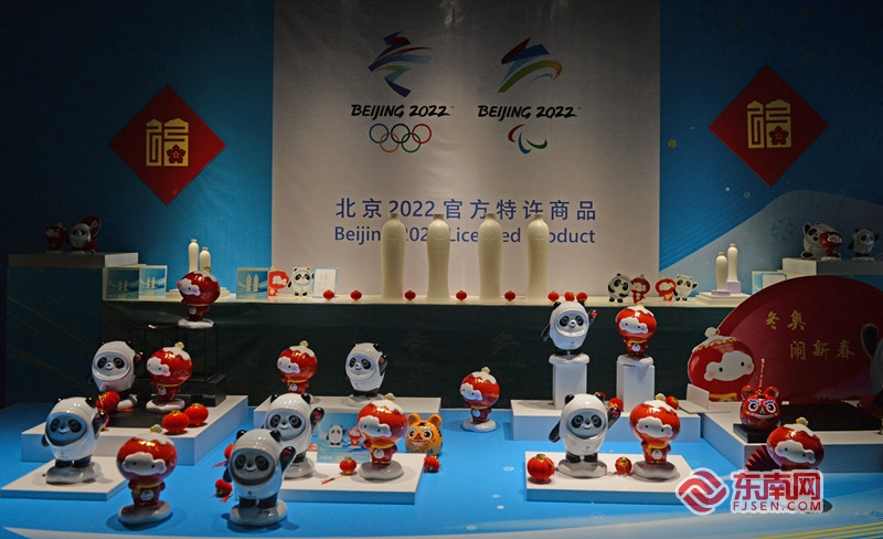 在德化冬奥会特许商品零售店内,待售的陶瓷“冰墩墩”“雪容融”。 李宏图 摄